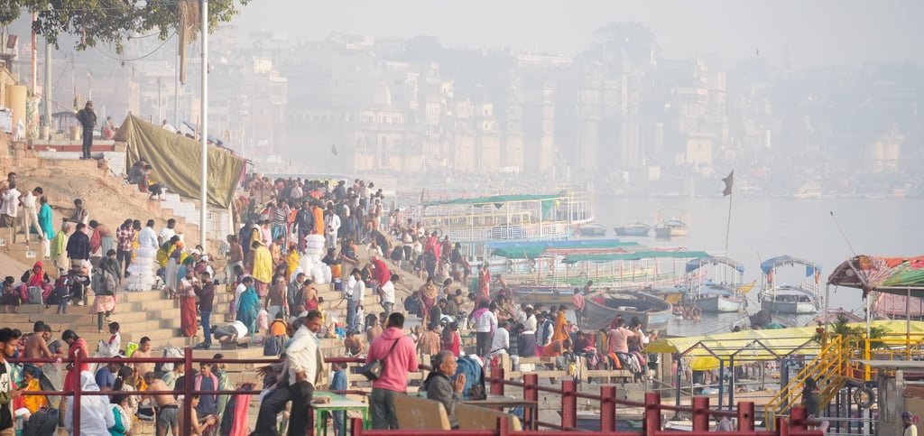 適逢12年一次、號稱地球上最大的慶典大壺節(Kumbh Mela),恆河所在城市Varanasi湧入從各地前來的虔誠印度教徒。走在河畔上,與人潮摩肩接踵,眾人交談聲、經文誦唱聲、攤販吆喝聲、候鳥嘰喳聲、貧民乞討聲此起彼落,複雜的音軌,把恆河的神秘與令人敬畏,化作一股具體的力量轟炸著我們的聽覺。