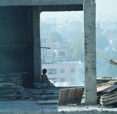 不乏美好的旅程中,「貧窮和困頓」卻以粗霸的形式插播,令人刺痛、發人省思。在車站冰冷地面席地而睡、為數不少、許多甚至攜家帶眷的貧民,恆河畔衣衫襤褸、蓬頭垢面、拿著鐵碗或徒手討要米飯的小孩、女人、老人。最揪心的,莫過於從我們下榻的高級飯店落地窗看出去,隔著街那棟廢棄危樓上,裸著上身玩耍的小小身影,他們一家人用簡單的布幔搭建起暫時的家。